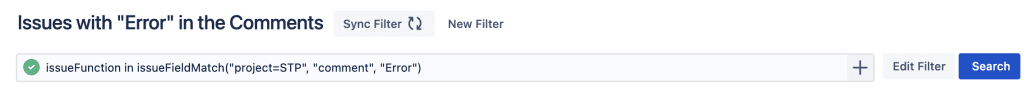 issueFunction in issueFieldMatch(“”, “comment”, “Error”)
