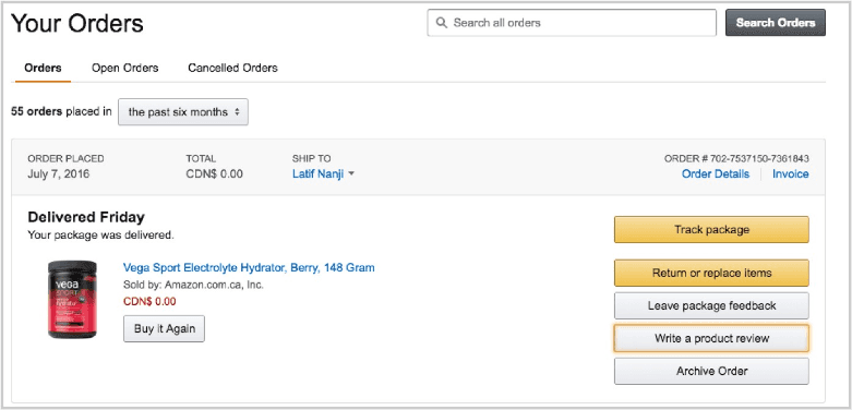 Consider the following example from Amazon: Imagine a customer who bought something, really loved it, and wanted to tell the seller how they felt. How many clicks would it take to complete that task?