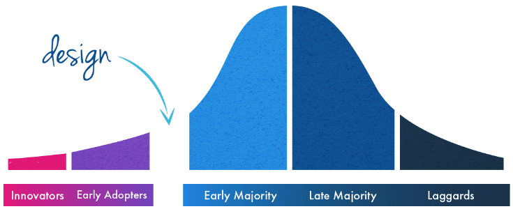 In his 1991 book Crossing the Chasm, Geoffrey Moore explained that products must bridge the chasm between early adopters and the majority of the market to succeed. Crossing the chasm is difficult, but only designing an MSP can make it easier. Picky audiences in the early majority are more likely to overlook faults in products with superior design elements.