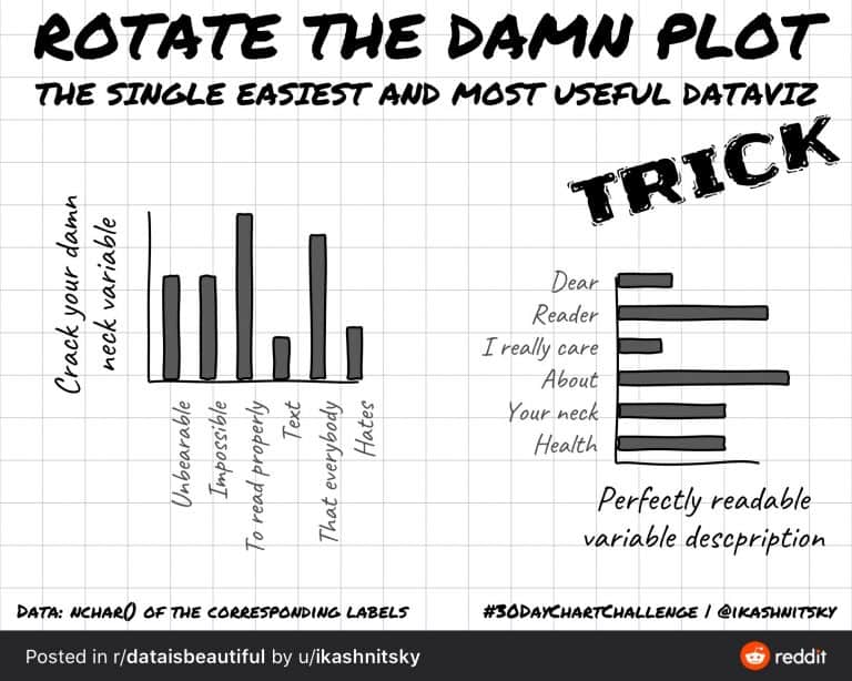 Next, statistician Nathan Yau said that if you see a 3D chart that’s 3D for no reason, like this one, then you should question the data, the chart, the maker, and everything based on the chart.