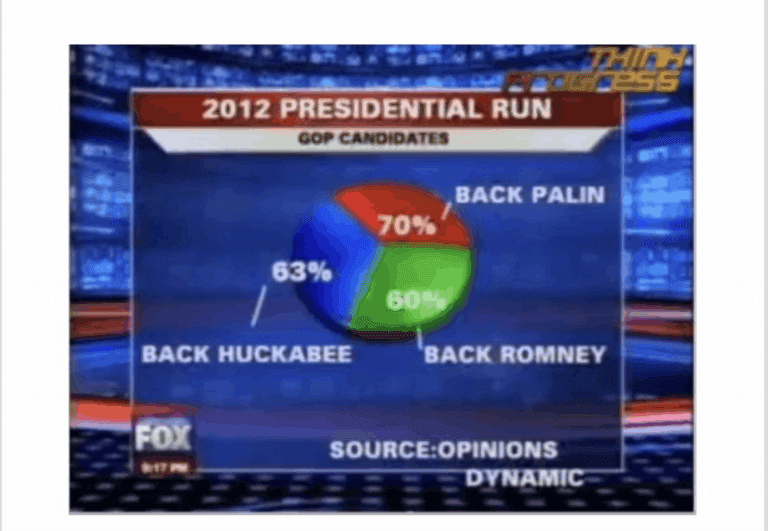 And finally, this one did the rounds on a few bad visualization sites. Again someone can’t count. The 3 slices in this pie chart add up to 193%.