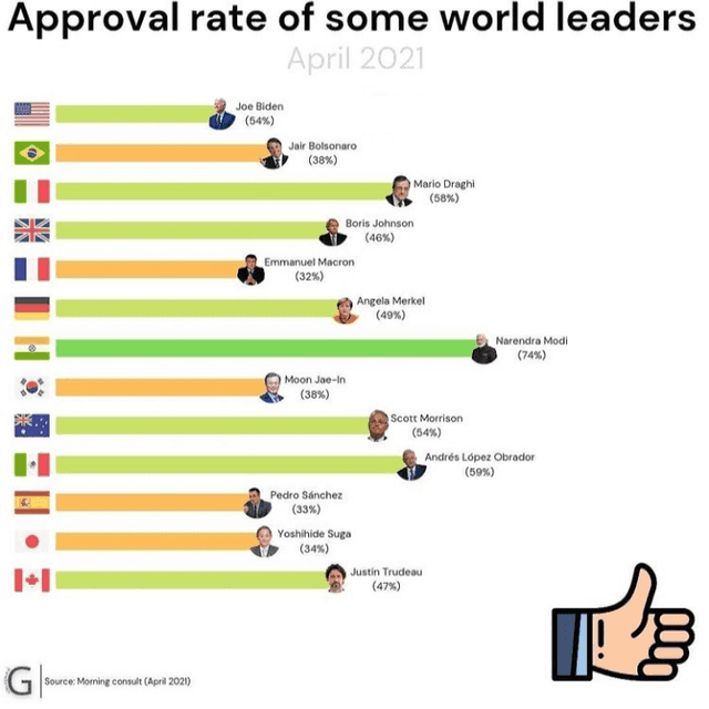 And of course there’s political agendas to consider. Whoever made this chart is clearly not a Joe Biden fan and really wants you to think that he has the lowest approval rating, even though most of the leaders in this graphic have a lower one.