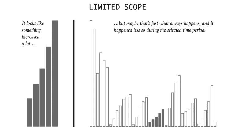 3. Improper scaling. If you want to show the difference between data points in a chart or graph, understand what scale you’re using and stick to it.