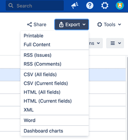 Once you’ve located your issues, click on the “Export” button at the top right corner of the Issue navigator.