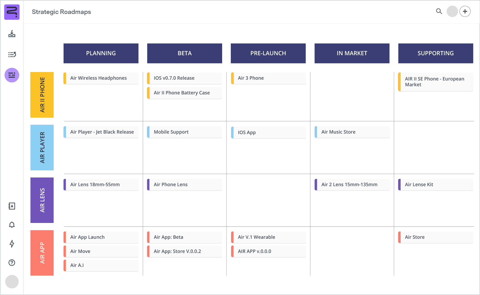 Agile flexibility: Strategic Roadmaps offers the adaptability to organize your boards according to theme, team, and status.