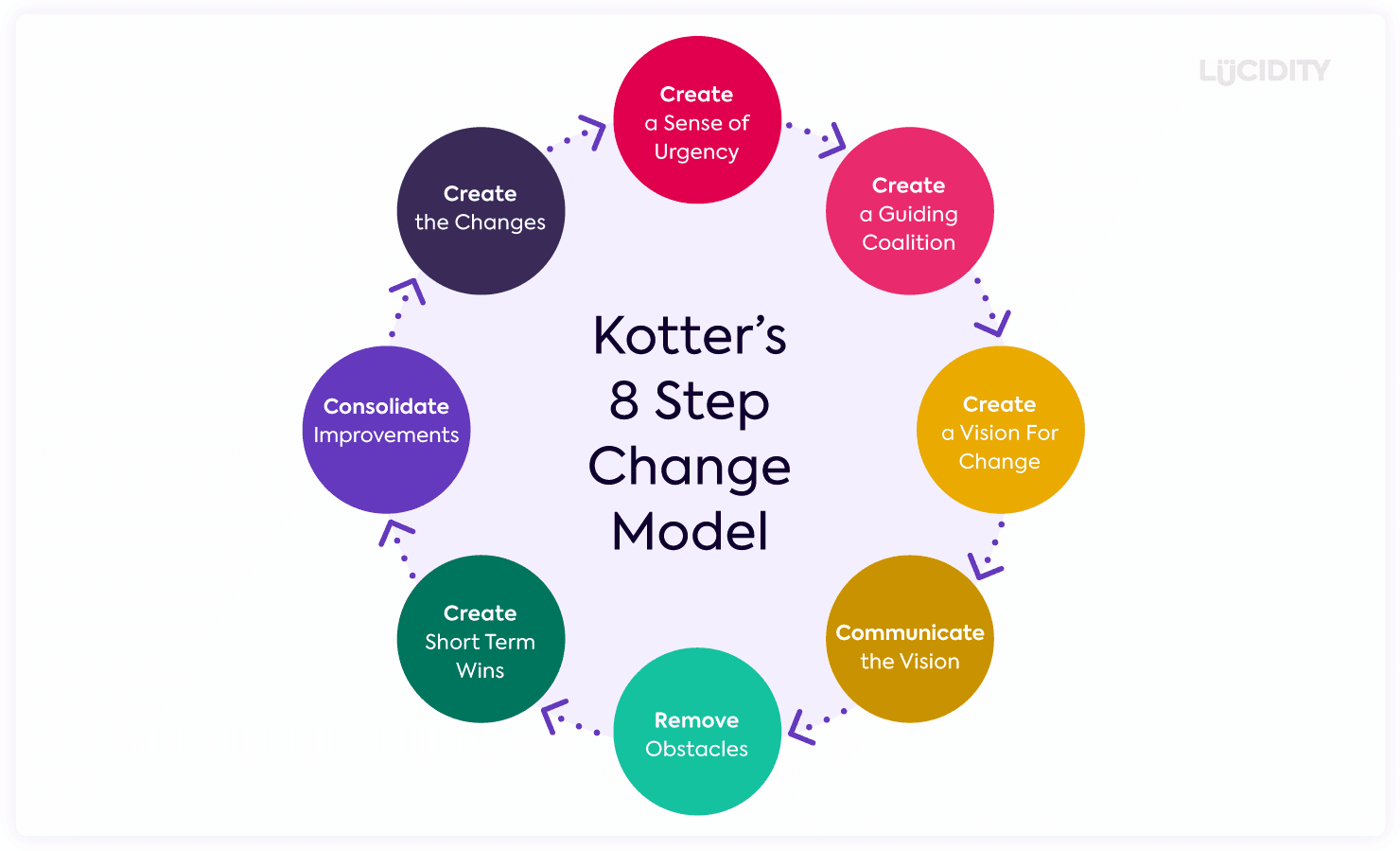 Fostering acceptance and adoption of new processes among employees is often challenging. Over time, leaders have developed various methodologies to manage organizational change. The top four models are: