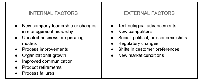 Many influences can prompt significant changes within an organization, including: