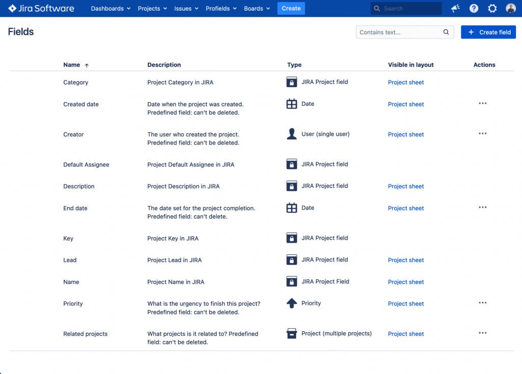 If you navigate to the Fields Manager tab, you will be able to see the list of the custom Jira project fields that you have created. You will also be able to see their descriptions, type, and the layouts they are associated with.