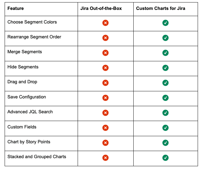 Compare standard Jira reporting with Custom Charts to see how it can help you level up your data visualizations.