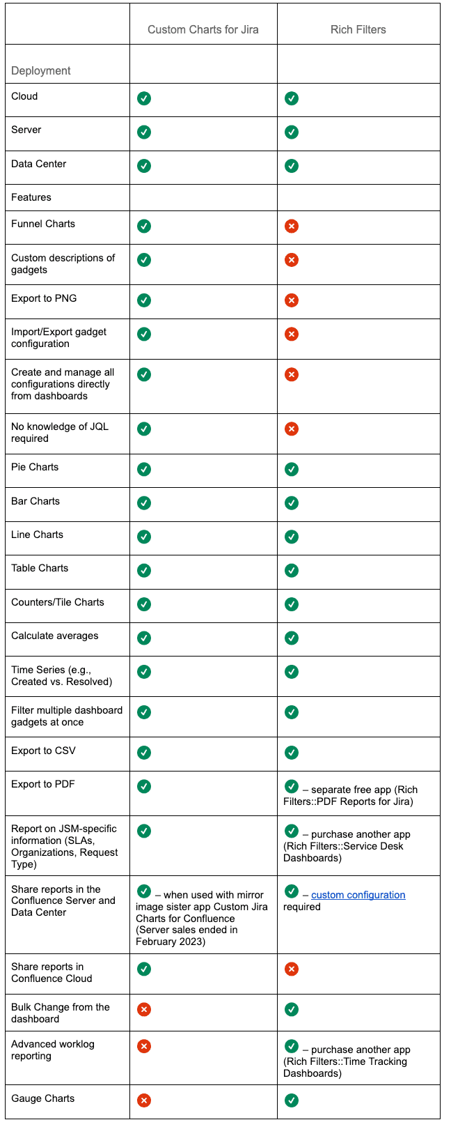 App comparison: Rich Filters vs. Custom Charts for Jira and Confluence