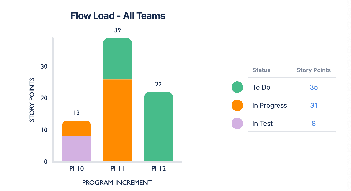 In this scenario, PI 12 is a future interval, which is why all the story points are still in “to do”. It means that a lot of to-do items are about to get added to any work left unfinished in PI 11. If we don’t look at reducing our flow load, we could start seeing queues building up.