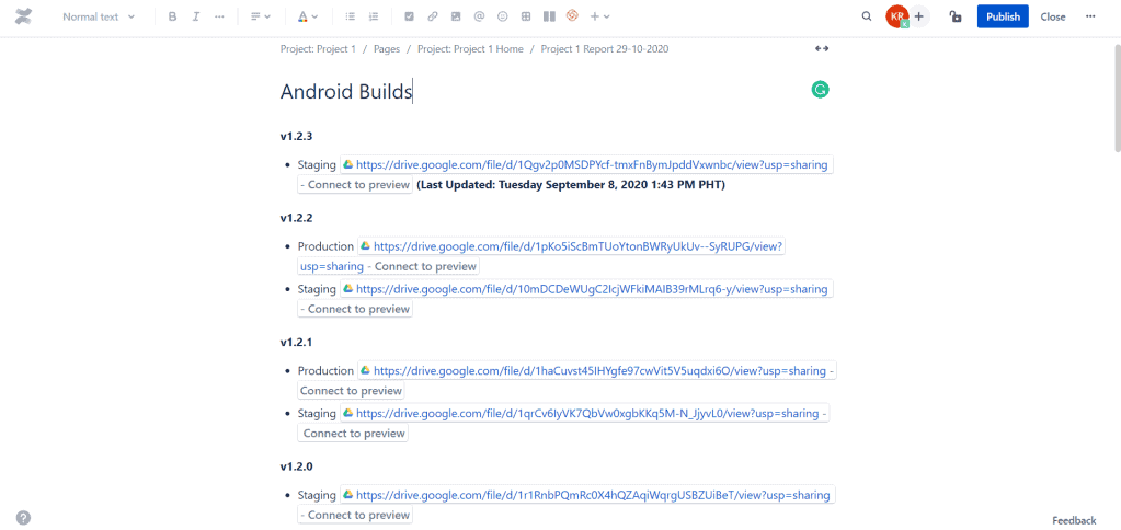 In software development, releasing multiple builds can sometimes cause problems. There are various cases where the wrong build was shipped and caused issues in production. This can be prevented if proper tracking and documentation is implemented. The image below shows a sample list of the different versions of an Android build. With this, you can quickly locate the latest build that was pushed in the App store, therefore preventing a mishap with a build release.