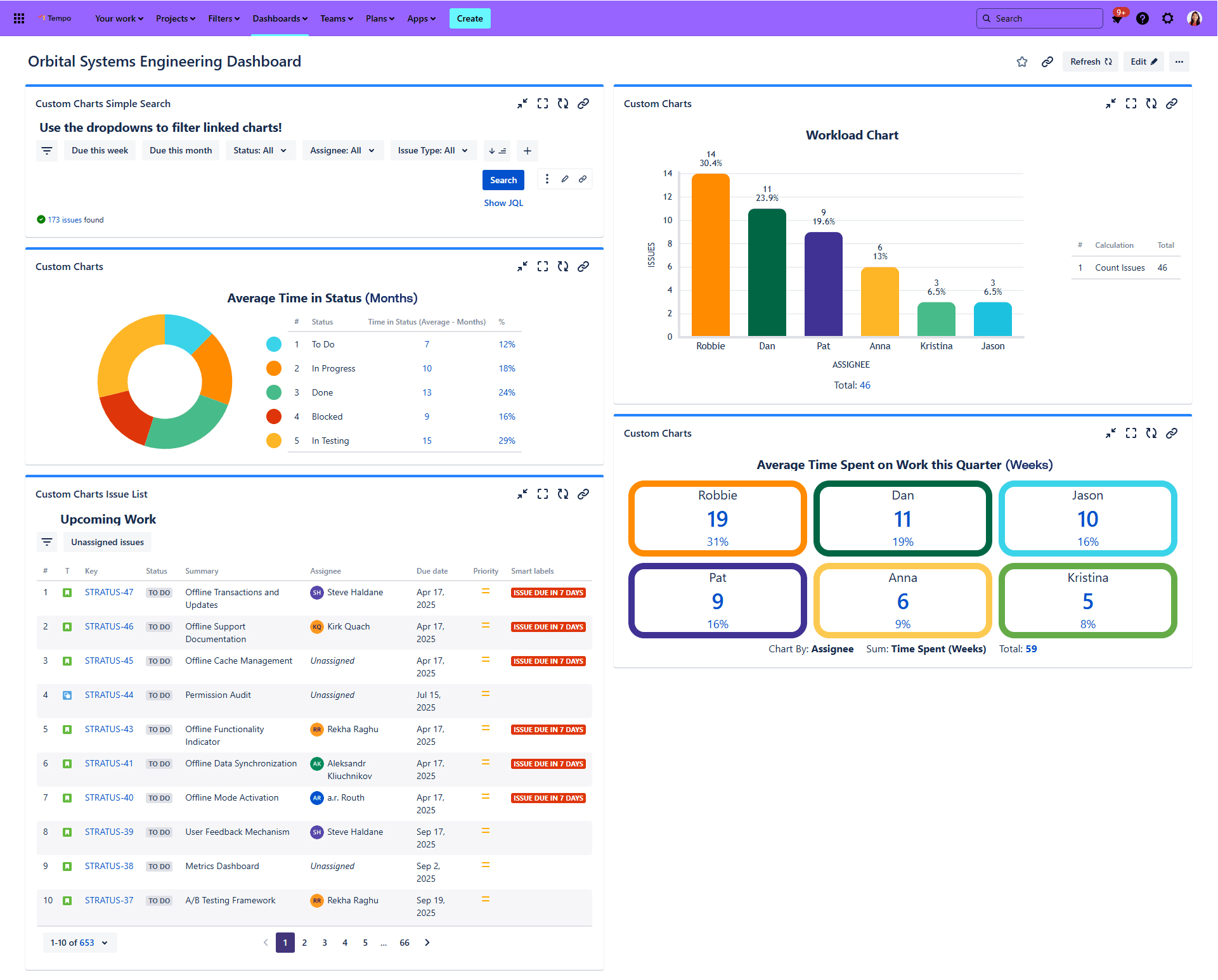 When you’re managing a long mission, alignment matters. The team at Orbital Inc. uses Custom Charts to show future capacity across weeks or months – so when priorities shift (as they always do), they can quickly see whether their planning still holds up.
