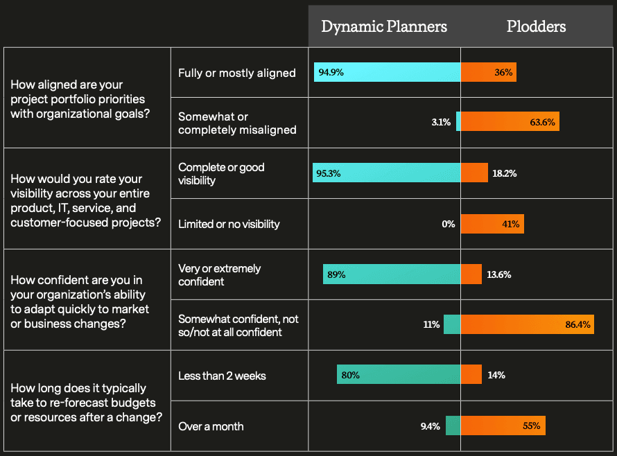 Our data shows that portfolio management tools and strategy are being implemented effectively within teams – however, these initiatives clash with other departments that have different demands, different tools, different processes, and are aligned to different goals.
