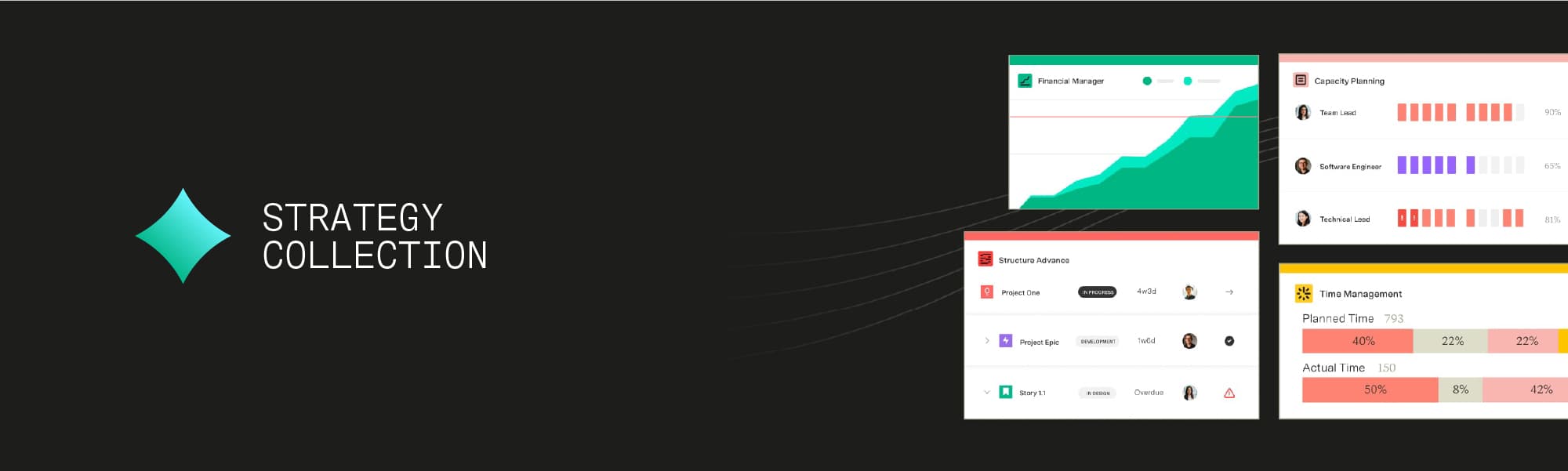 See the Strategy CollectionWith the full suite in place, companies can adjust plans in real time, prioritize time, costs, and people, and keep investments aligned to strategic outcomes.