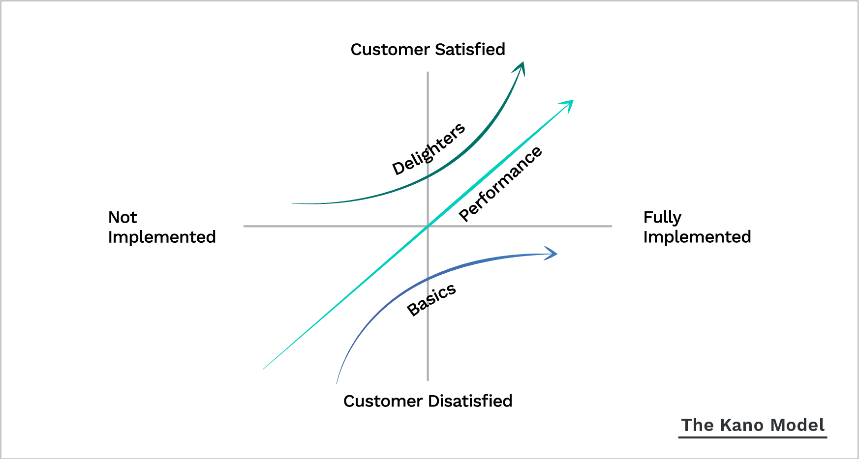 The core idea of the Kano model is that the more time you spend investing resources (time, money, effort) to create, innovate and improve the features in each of those buckets, the higher the level of customer satisfaction will be.