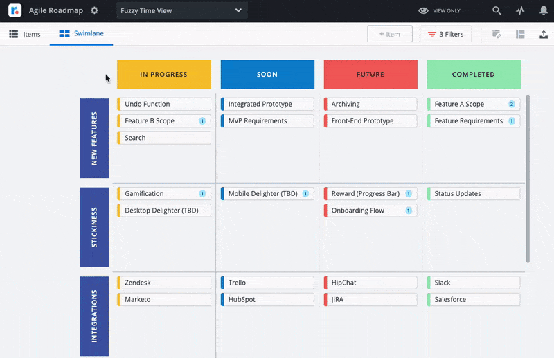 Cloud-based roadmap tools keep everyone on the latest version, support multiple views for different audiences, and tie directly to data in Jira.