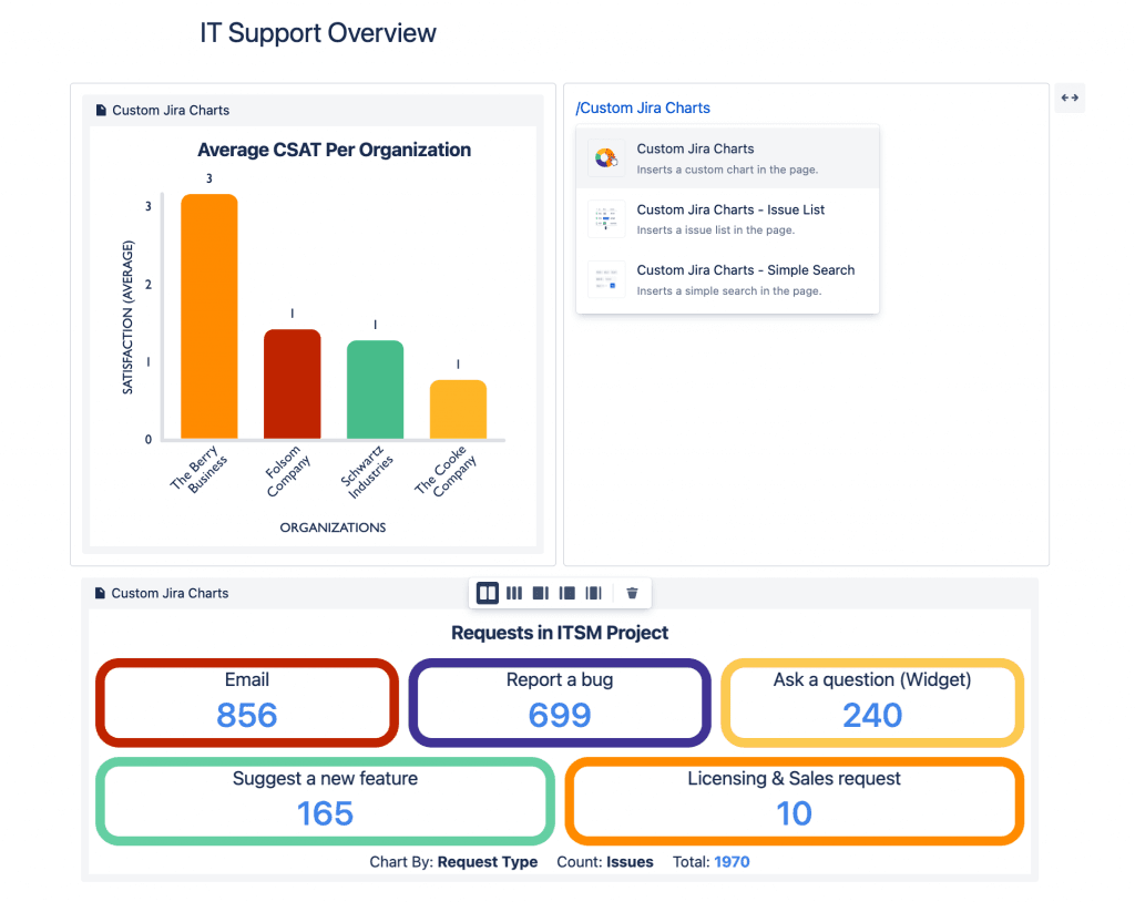 Custom Charts for Confluence: Effortlessly build charts, reports, and dashboards in Confluence based on real-time Jira data.
