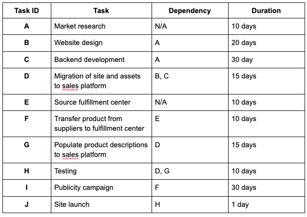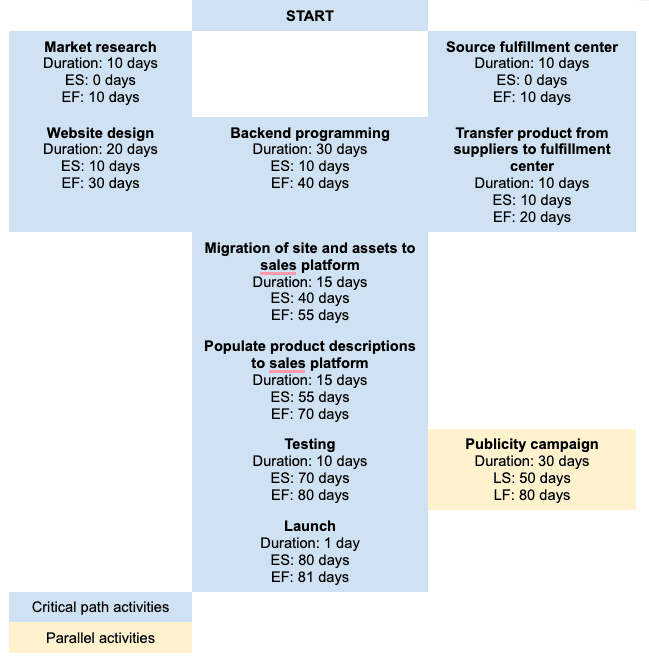 Critical path method example