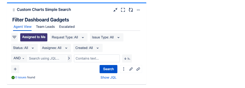 With Simple Search, you can dynamically filter your connected Custom Charts and Issue Lists! Gone are the days of needing to create 10 dashboards for individual teams.