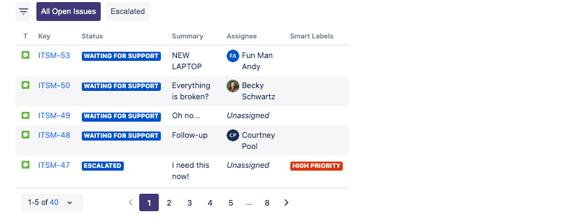 See issue specifics directly on your dashboards! You can display as many or as few fields as you want, and even track things like SLAs.