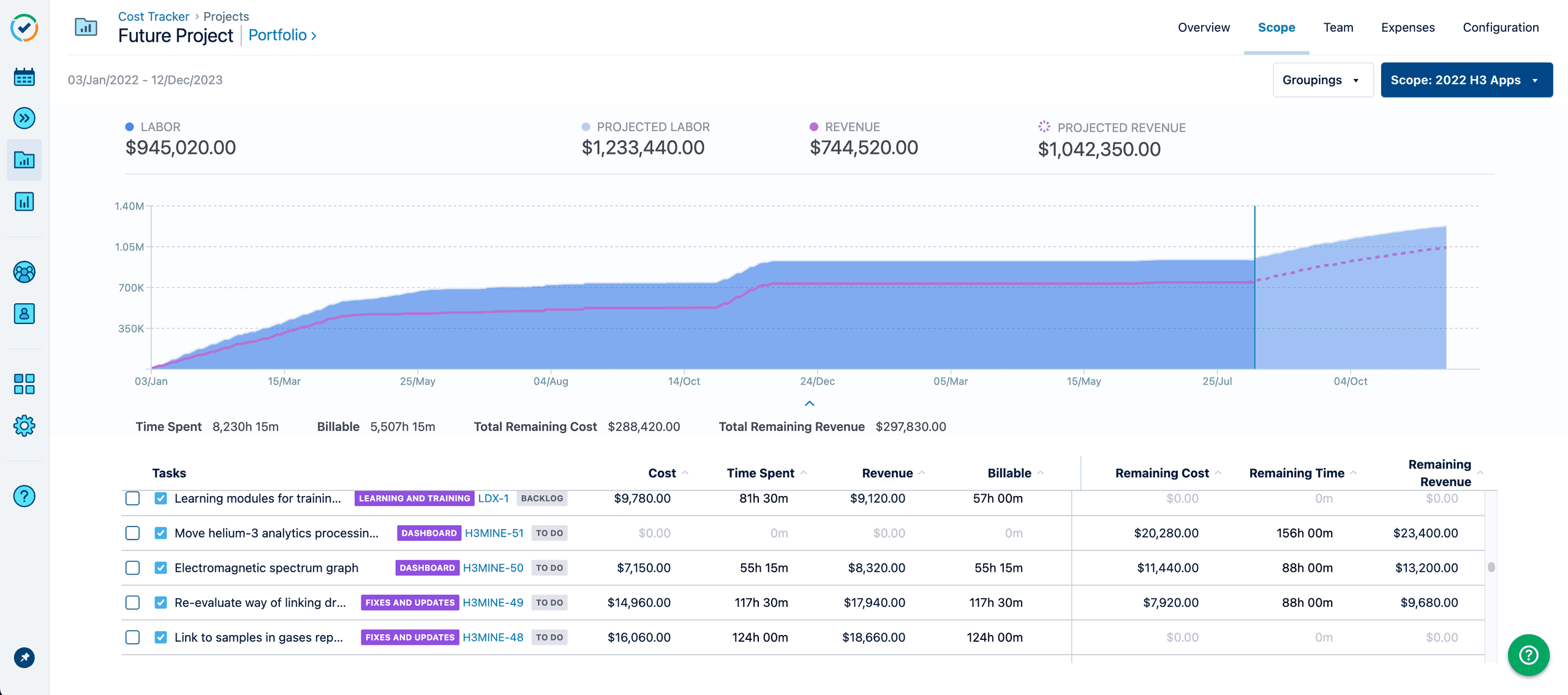 Tempo Financial Manager has functionality to not only track the revenue of your projects and portfolios, but can also project future revenues when combined with Tempo Capacity Planner.