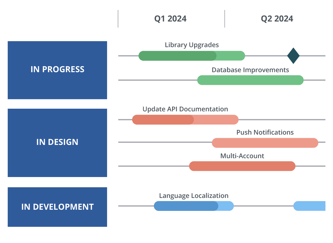 No more double data entry! Roadmaps update with project management data in real time, creating a single source of truth. Integrate with Jira, Azure DevOps, Asana, Shortcut, Trello, GitHub and GitLab.