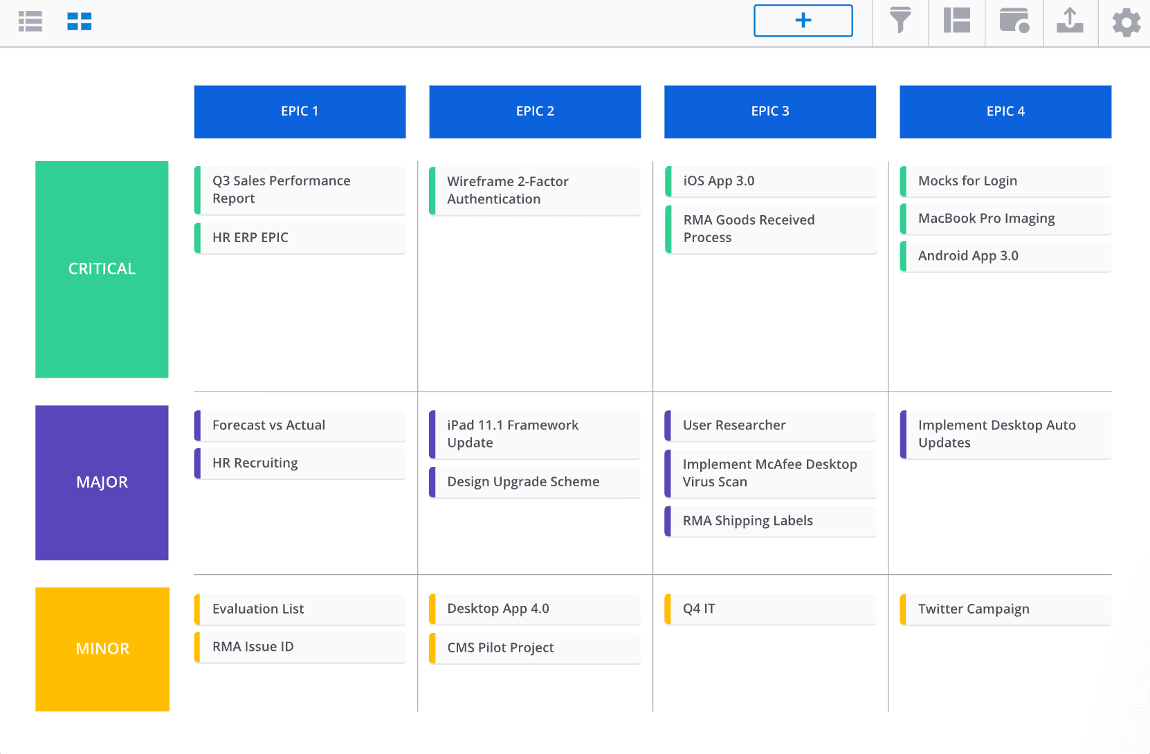 Existing Jira fields are automatically mapped to Strategic Roadmaps, making it easy to track progress by pivoting on fields like issue type and status.