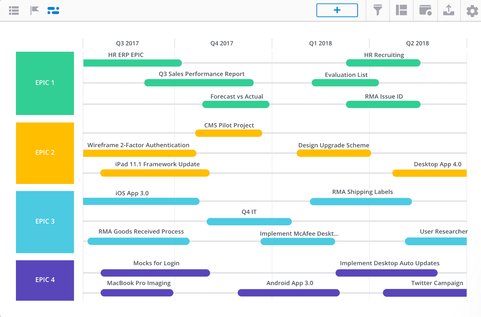Your Jira issues that include start and finish dates will instantly be visible in the Timeline view of your roadmap when synced to Strategic Roadmaps.